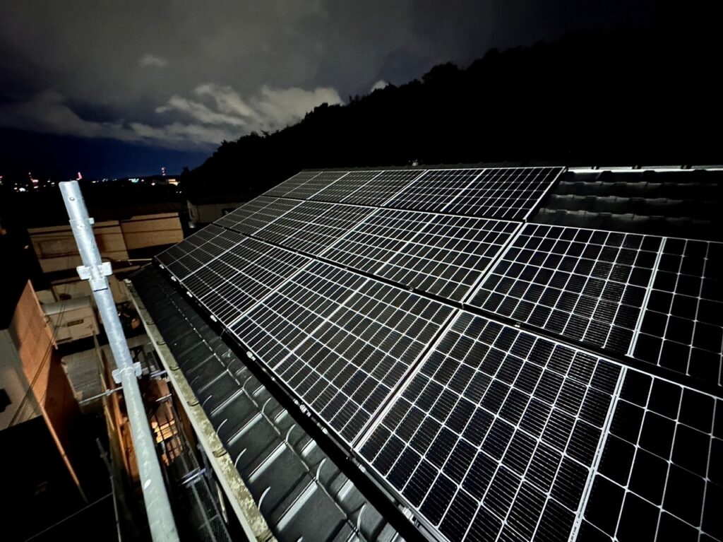 今回の施工では、屋根の形状や日当たりをしっかり確認し、発電効率を最大限に活かせる配置で太陽光パネルを設置しました。採用した太陽光パネルは国内メーカーで高い信頼性を持つ